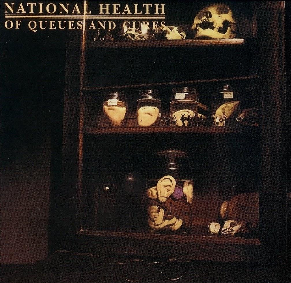 National_health_Of_Queues_and_CuresK tomu, že je kapela mixem různých hudebních idejí, je celkem přijatelné vysvětlení. Skupina National Health se totiž v polovině sedmdesátých let utvořila ze zbytků všemožných dalších rozpadlých uskupení. Na stejnojmenném debutu National Health (1977) šlo zejména o kombinaci tradičních canterburských kapel Hatfield and the North a Gilgamesh, navíc se spoustou hostů. Na druhé album Of Queues and Cures (1978) se sestava trochu změnila, jádro však zůstalo – klávesák Dave Stewart, kytarista Phil Miller a bubeník Pip Pyle (všichni tři bývalými členy Hatfield and the North). Nově se připojí basák John Greaves (Henry Cow) a na několik skladeb i nezanedbatelný počet hostujících hudebníků – nejznámější bude violoncellistka Georgie Born (Henry Cow, Art Bears) nebo dechová sekce Phil Minton, Paul Nieman, Jimmy Hastings a Keith Thompson – ani tady však výčet nekončí, je však zbytečné tu všechny zmiňovat, vzhledem k tomu, že někteří z nich přispěli k hudbě naprosto minimálně.