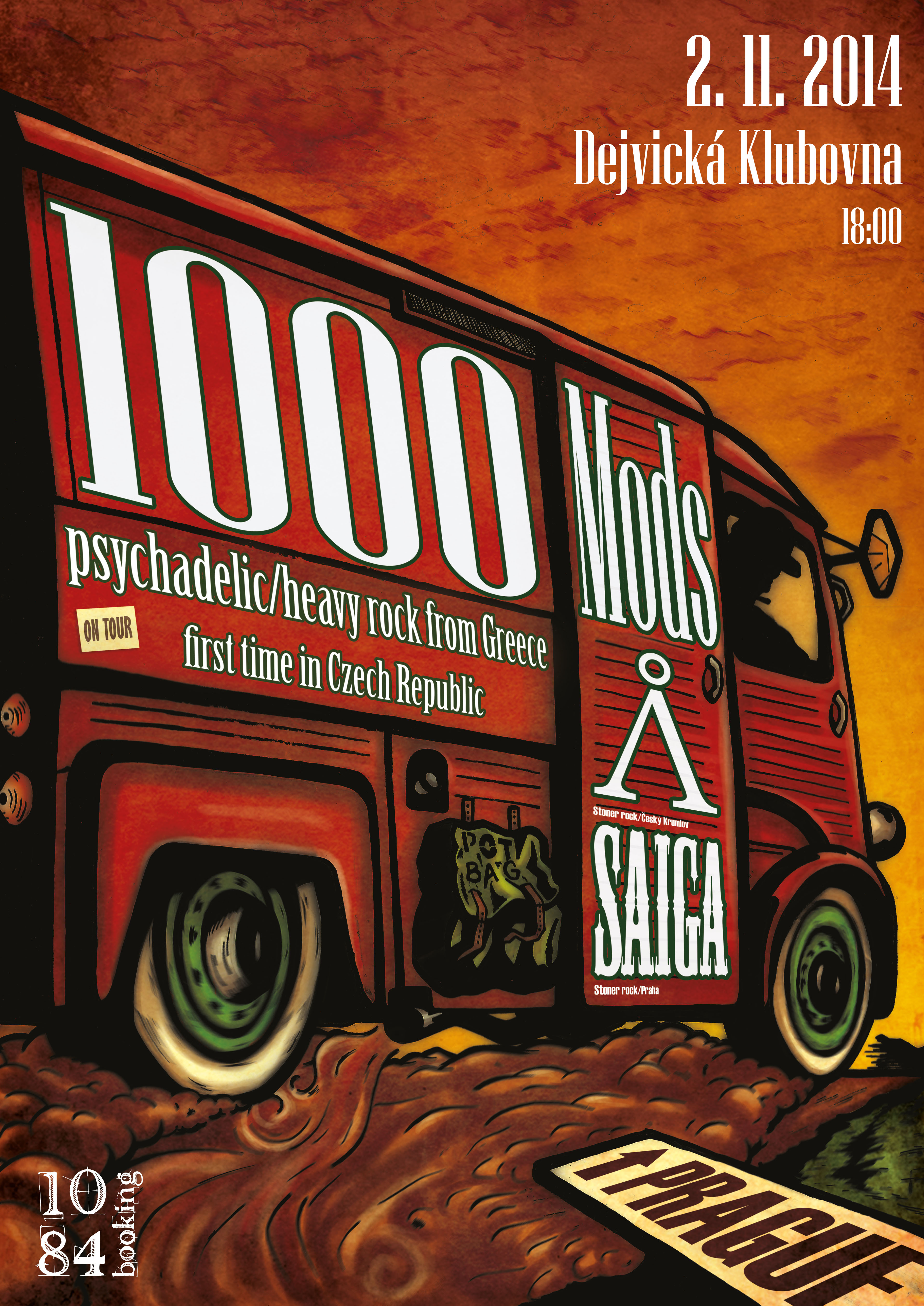 1000modsMilovníci slunce, dálek, výšek, dodávkových výletů, stonerových groovů, tučných riffů a vyfuzzovaných aparátů s hlasitostí daleko přes desítku se přijdou v listopadu trochu ohřát do Dejvické Klubovny. Do Prahy poprvé dorazí řečtí 1000mods, vydatně podpoření dvěma nadějemi českého stoneru: českokrumlovskými jezdci Λ /Lambda/ a česko-ruskou exilovou našláplostí Saiga. Řekové v Klubovně představí své nové album Vultures (2014), navazující na úspěšný a ověřený kousek Super Van Vacation (2011).